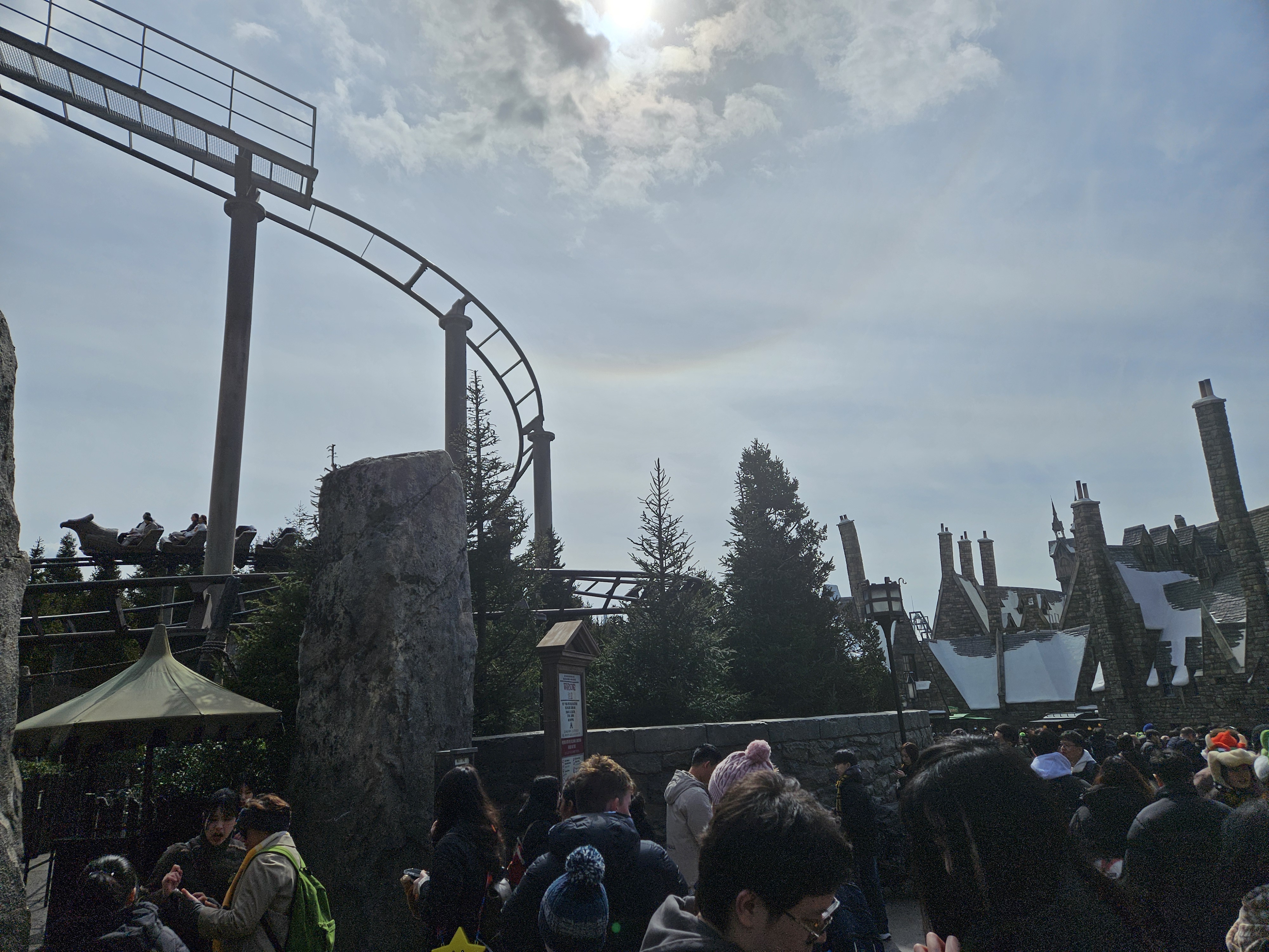스페이스 판타지 더 라이드 익스프레스 티켓으로 들어갔지만 앞타임이 있어서 약간의 대기 시간이 있었기에 시간이 약간 지체되었고 나와서 바로 해리포터 성으로 갈수 있었어요. 해리포터는 들어가는 길이 길기 때문에 서둘러서 가시는게 좋아요. 입구에서부터 압도 되어 버리는 동화속 세계에 들어온것처럼 만들어 버리는 해피포터 마법의 성.